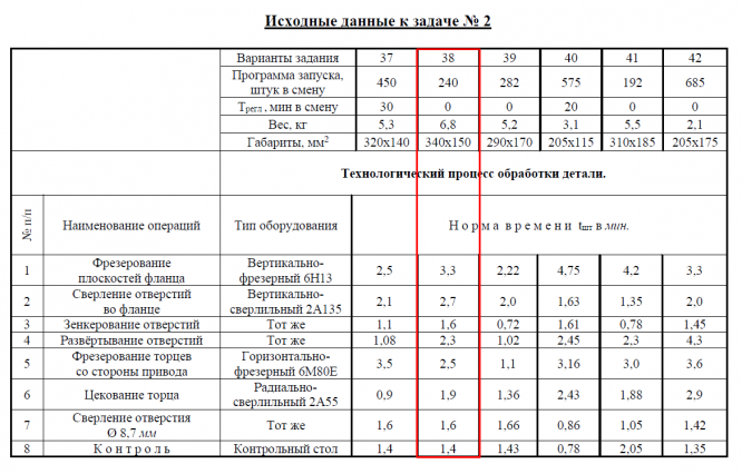 1. Технологический процесс обработки с нормами времени по операциям приведён в таблице «Исходные данные к задаче № 2 » (в соответствии с номером варианта).