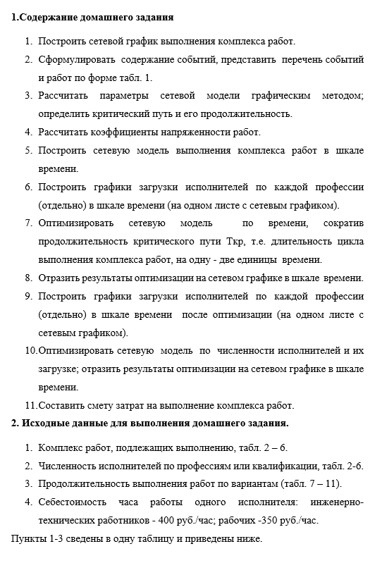 3. Продолжительность выполнения работ по вариантам (табл. 7 – 11).