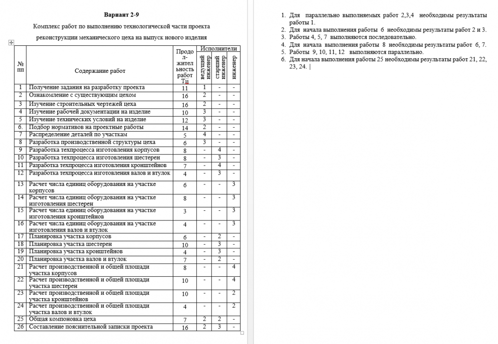 1. Для параллельно выполняемых работ 2,3,4 необходимы результаты работы 1.