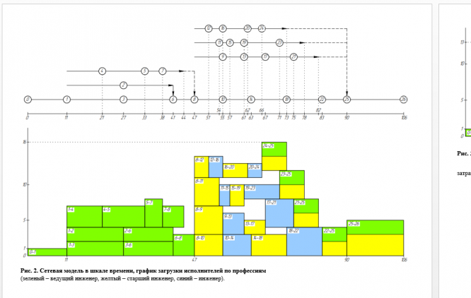 6. Построить графики загрузки исполнителей по каждой профессии (отдельно) в шкале времени (на одном листе с сетевым графиком).