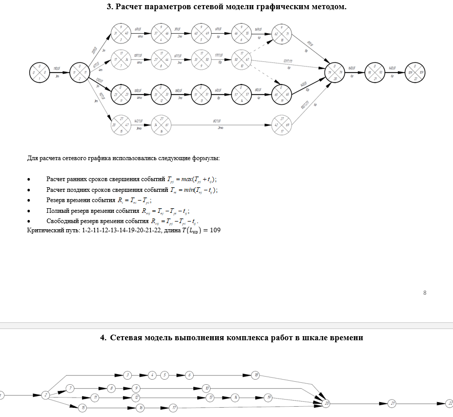 - Рассчитать параметры сетевой модели графическим методом; определить критический путь и его продолжительность.