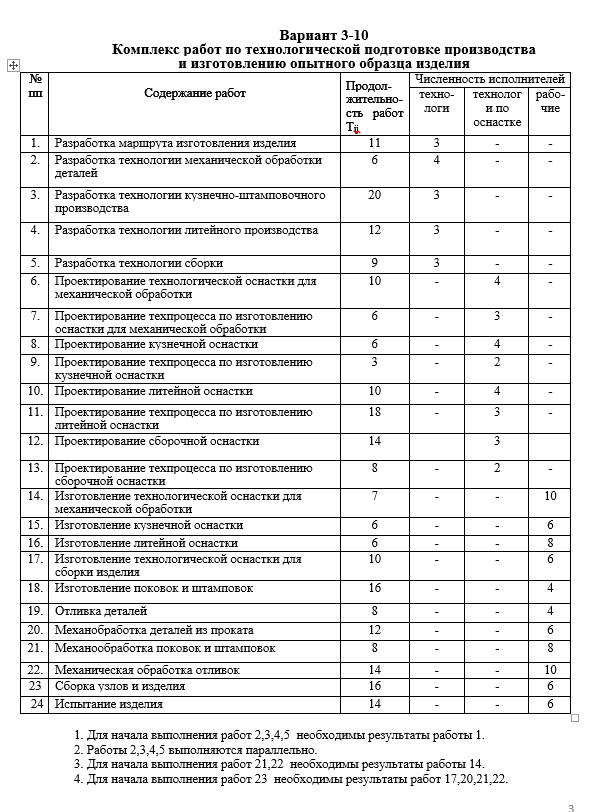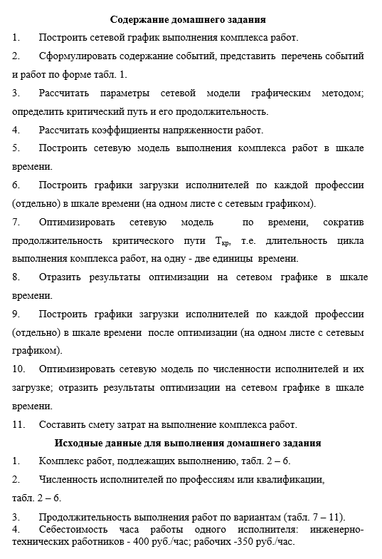 - Продолжительность выполнения работ по вариантам (табл. 7 – 11).