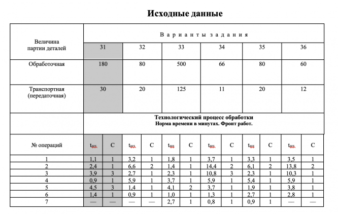ДЗ 1: Расчет производственного цикла вариант 31
