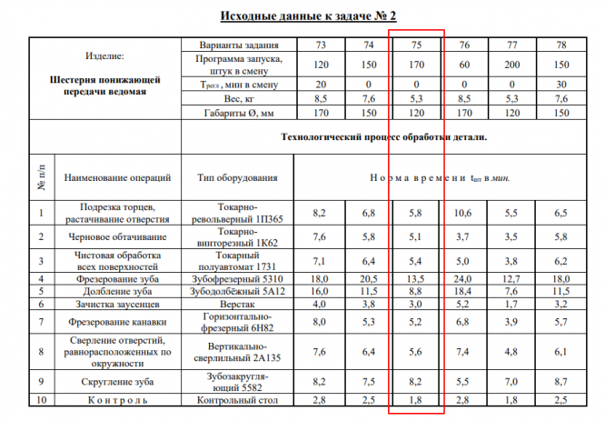 ДЗ 2: Расчёт и планировка поточной линии вариант 75