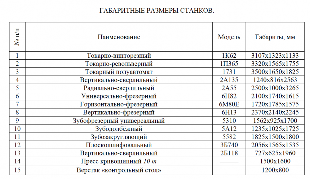 5. Скомпоновать и вычертить в масштабе схему планировки выбранной поточной линии. Определить величину производственной площади. 6. Определить потребное количество основных рабочих на линии, учитывая возможное совмещение профессий (и операций). 7. Определить сменную выработку на одного рабочего и один квадратный метр производственной площади. Данные к решению задачи. I. Технологический процесс обработки с нормами времени по операциям приведён в таблице «Исходные данные к задаче № 2» (в соответствии с номером варианта). II. Продолжительность смены – 8 часов, режим работы – 1 смена. ГАБАРИТНЫЕ РАЗМЕРЫ СТАНКОВ..