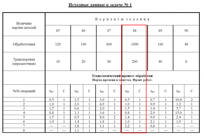 1. Технологический процесс с нормами времени tшт и фронтом работ С по операциям при-ведён в таблице «Исходные данные к задаче № 1 » (в соответствии с номером варианта).
