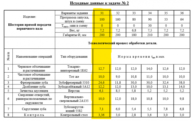 ДЗ 2: Расчет и планировка поточной линии вариант 31