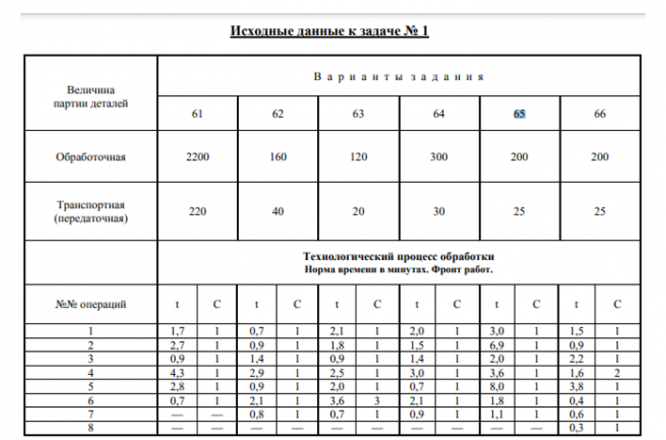 ДЗ 1: Расчёт производственного цикла простого производственного процесса вариант 65