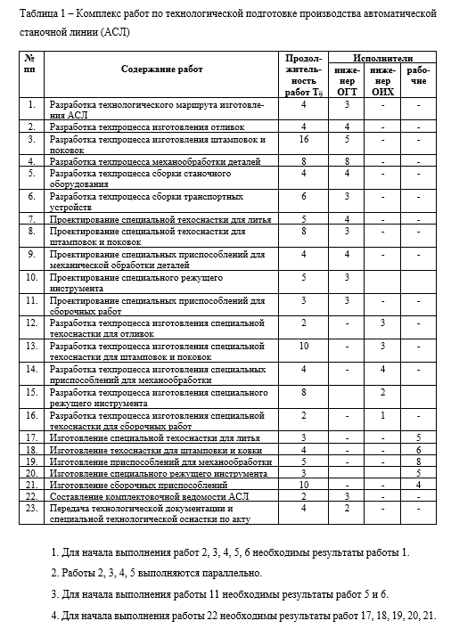 - Продолжительность выполнения работ в соответствии с вариантом – таблица 1.