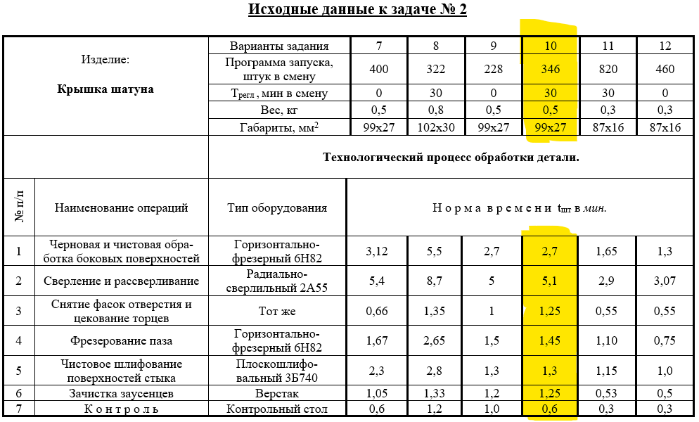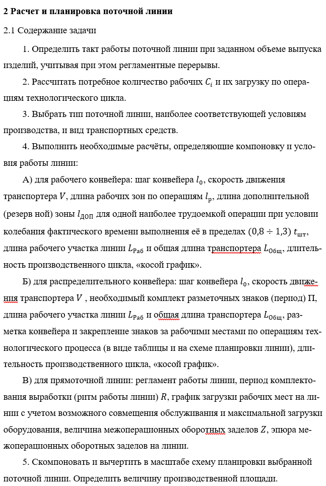 ДЗ 2: Расчет и планировка поточной линии вариант 10