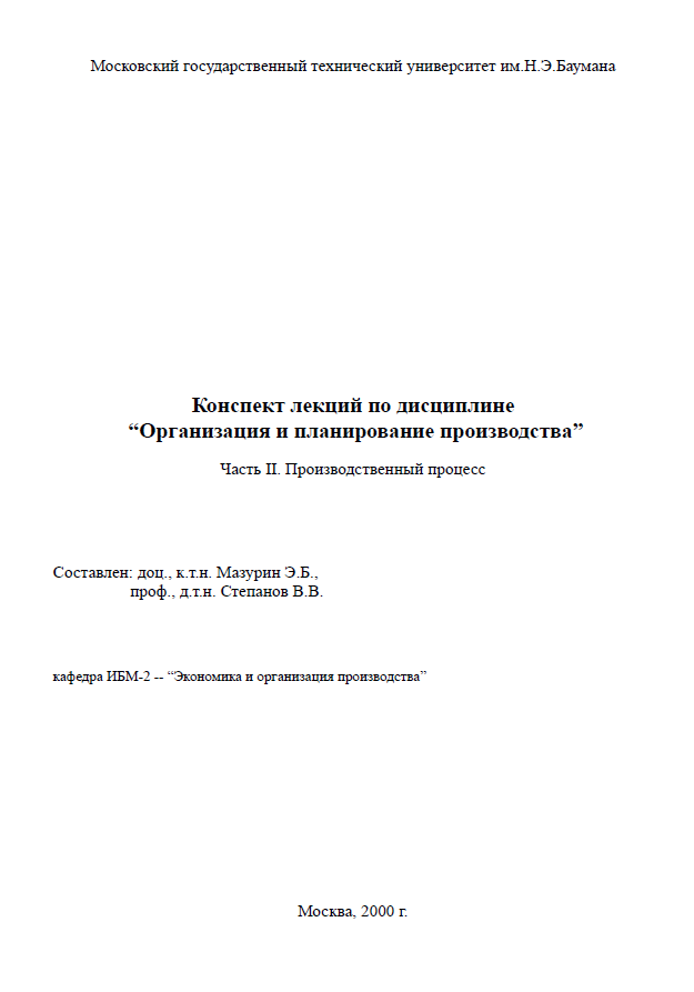 Конспект лекций по дисциплине “Организация и планирование производства” Часть II. Производственный процесс.docx.pdf