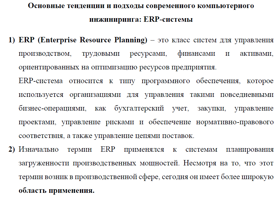 Основные тенденции и подходы современного компьютерного инжиниринга: ERP-системы