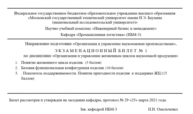 Для студентов МГТУ им. Н.Э.Баумана по предмету Организация и управление жизненным циклом наукоемкой продукцииБилеты к экзамену за 2019 и 2021 года без ответовБилеты к экзамену за 2019 и 2021 года без ответов