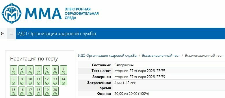 Сборник ответов к экзаменационному тесту Организация кадровой службы ММА.