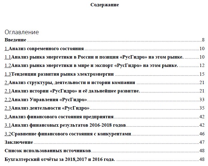 Курсовая работа: Анализ организации предпринимательской деятельности ПАО "РусГидро"