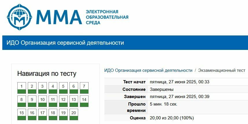 Сборник ответов к экзаменационному тесту Организация сервисной деятельности ММА.