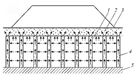 грунтовой подушкой фундаментом основанием дренажным слоем В каком слое грунта, расположенном над толщей вечномерзлого грунта, происходят ежегодные циклы оттаивания и промерзания? В инертном В деятельном В стабильном В мерзлотном К какой группе предельных состояний относится потеря устойчивости сооружения вследствие разрушения основания? Первая группа предельных состояний Вторая группа предельных состояний Третья группа предельных состояний Нулевая группа предельных состояний Какие колебания считаются наиболее опасными для сооружений? Низкочастотные (близкие к собственным частотам конструкции) Высокочастотные (свыше 100 Гц) Постоянные статические нагрузки Термические деформации Какой из перечисленных факторов НЕ учитывается при проектировании фундаментов под машины? Частота вращения оборудования Потребляемая мощность оборудования Вес станка или агрегата Характеристики грунта основания На изображении под цифрой 2 обозначен(а) … кессон шлюзовый аппарат надкессонная кладка эрлифт В разработанных шурфах производят … описание всех слоев грунтов основания до подошвы фундамента отбор образцов грунта ненарушенного сложения для лабораторных исследований из-под подошвы фундаментов или из стен шурфа и его дна установку временных опор для фундамента обследование фундаментных конструкций Как в конструкциях, закрепляющих откосы, называются сплошные щиты или щиты с прозорами, образованные из горизонтальных элементов (чаще всего досок), закладываемых за вертикальные стойки? Отмостка Опалубка Шпунт Забирка Какие теории применяются при расчете гибких фундаментов? Теория местных упругих деформаций, основанная на гипотезе Винклера и теория общих упругих деформаций, основанная на гипотезе упругого полупространства Теория фильтрационной консолидации, теория вторичной консолидации и теория ползучести Теория одномерного уплотнения грунта, теория линейно-деформируемых тел, теория упругого слоя ограниченной толщины и теория предельного равновесия Теория упругопластической среды и теория нелинейно-деформируемой среды Какой параметр НЕ учитывается при выборе схемы закрепления откосов? Грунтовые условия Гидрогеологические условия Температура воздуха Нагрузки на откос Яма для осмотра фундамента и (или) грунтового основания, а также для отбора грунтовых проб при проведении геологических изысканий называется … траншеей котлованом колодцем шурфом По расположению свай в плане фундаменты могут быть на … одиночных сваях парных сваях свайных кустах свайных плитах Какой тип сооружения свободно следует за деформациями основания? Абсолютно жесткое Абсолютно гибкое Сооружение конечной жесткости Временная конструкция Как классифицируются нагрузки по продолжительности действия? Статические и динамические Вертикальные и горизонтальные Постоянные, временные, особые Равномерные и неравномерные Какой вид деформаций относится ко второй группе предельных состояний? Разрушение грунта основания Образование трещин в фундаменте, приводящих к снижению его прочности Чрезмерные осадки здания, нарушающие его нормальную эксплуатацию Потеря устойчивости откоса На изображении представлена схема уплотнения слабого грунта статической нагрузкой, на которой цифрой 2 обозначен(а) … пластовый дренаж нагрузка в виде насып