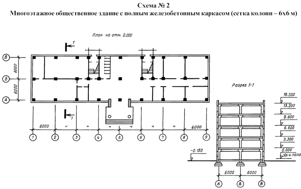 Рис.1. Многоэтажное общественное здание с полным железобетонным каркасом.