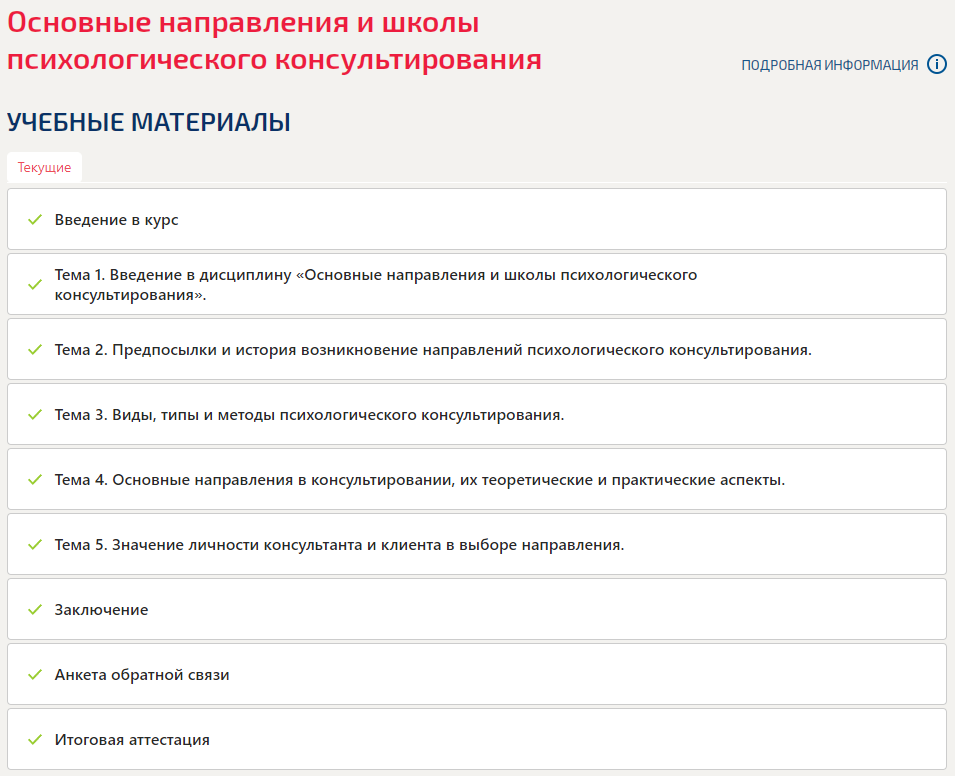 Основные направления и школы психологического консультирования (Темы 1-5, итоговый тест, компетентностный)