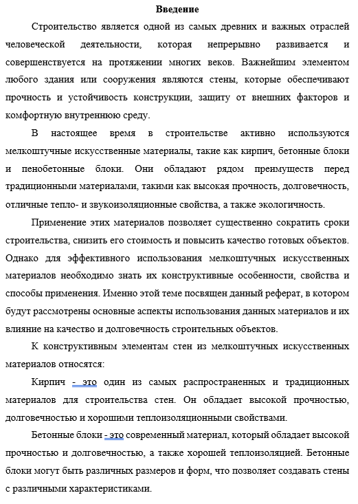 Реферат: Конструктивные элементы стен из мелкоштучных искусственных материалов вариант 15
