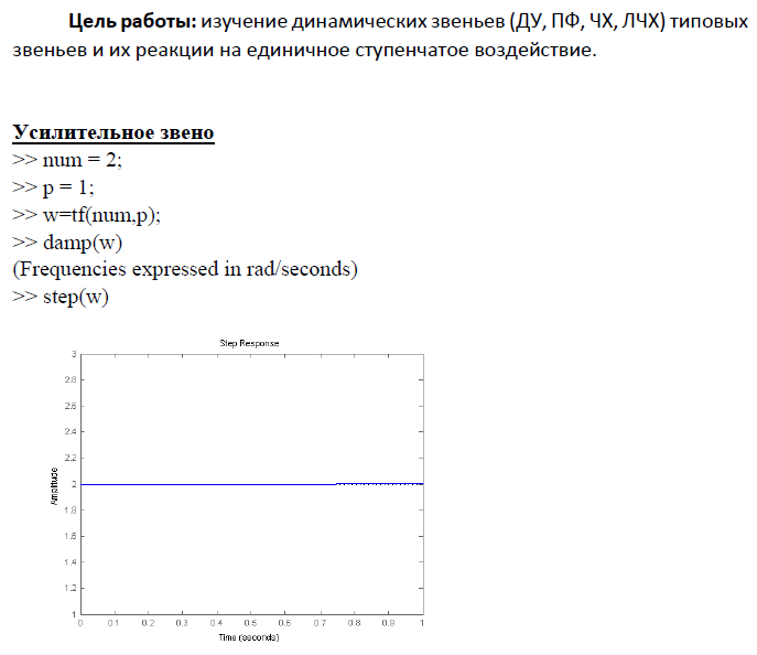 Лабораторная работа: Отчет по лабораторной работе "Исследование динамики типовых звеньев"