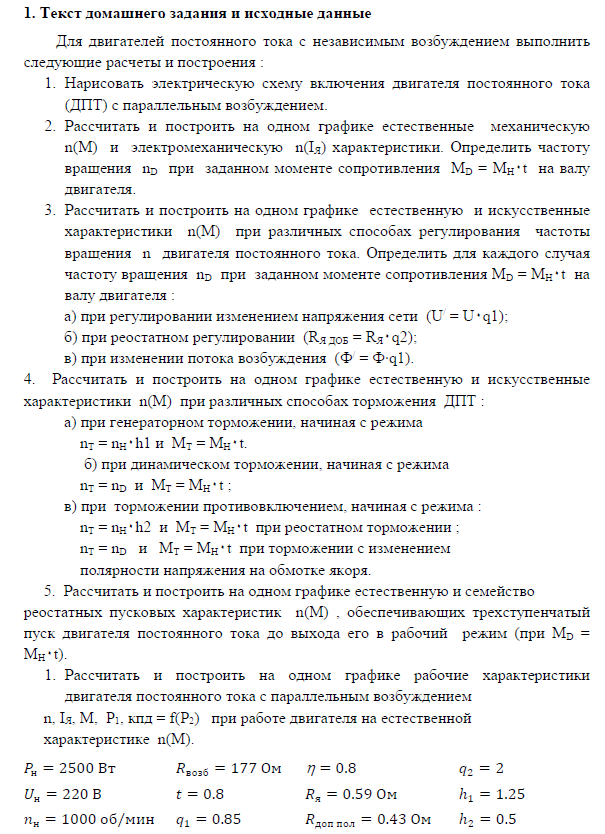 3. Расчет искусственных механических характеристик n(M) при различных способах регулирования частоты вращения двигателя постоянного тока
