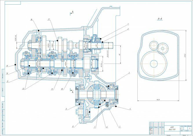 Для студентов по предмету Основы автомобилестроенияКПП ВАЗ 1111. Чертеж.КПП ВАЗ 1111. Чертеж.