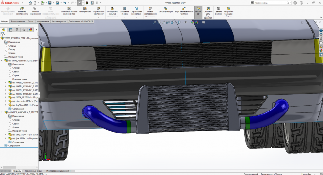 в формате step. Цифровая 3d модель машины с интеркулером и колесами. Воздух-воздух интеркулер для машины. Какой это tube&fin или bar&plate не знаю, смотрите сами по скриншотам.