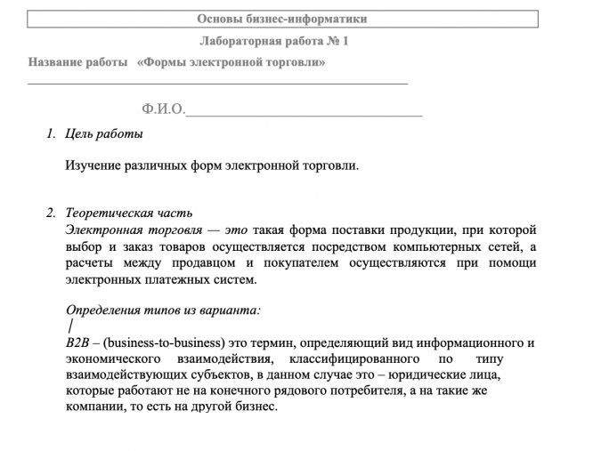 Готовая ЛР № 1 "Формы электронной торговли" по ОБИ для ИБМ (зачтена)