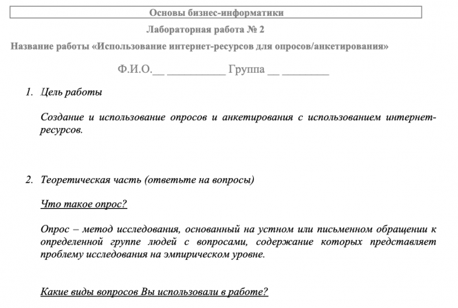 Готовая ЛР № 2 "Использование интернет-ресурсов для опросов/анкетирования" по ОБИ для ИБМ 1 семестр (зачтена)