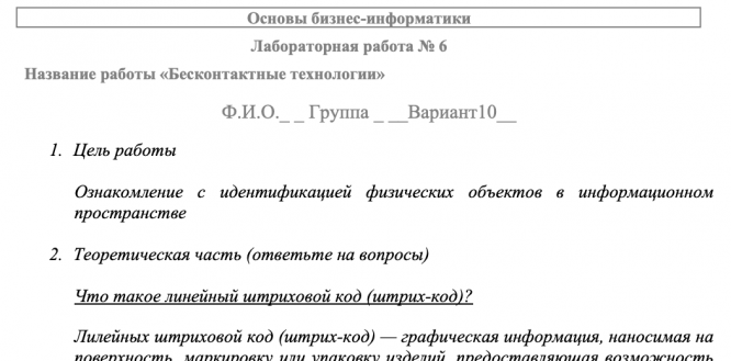Готовая лабораторная работа № 6 «Бесконтактные технологии» по ОБИ 10 вариант 1 семестр (зачтена)