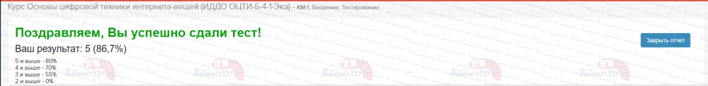 Курс Основы цифровой техники интернета-вещей - КМ-1. Введение. Тестирование - 86.7%