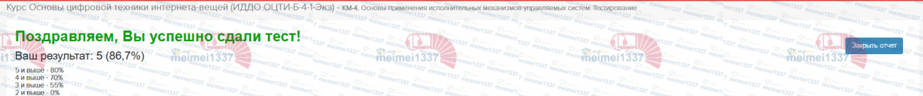 Для студентов ИДДО НИУ «МЭИ» по предмету Основы цифровой техники интернета-вещейОсновы цифровой техники интернета-вещей - КМ-4. Основы применения исполнительных механизмов управляемых систем. ТестированиеОсновы цифровой техники интернета-вещей - КМ-4. Основы применения исполнительных механизмов управляемых систем. Тестирование