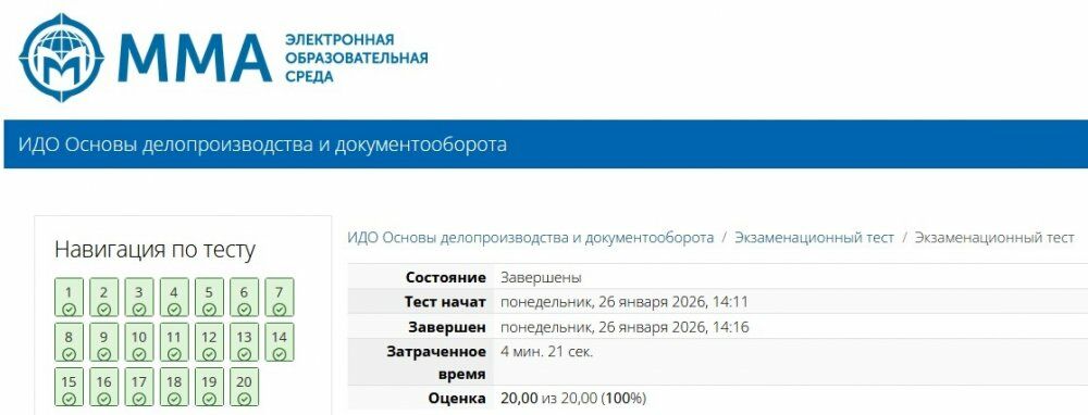 Сборник ответов к экзаменационному тесту Основы делопроизводства и документооборота ММА.