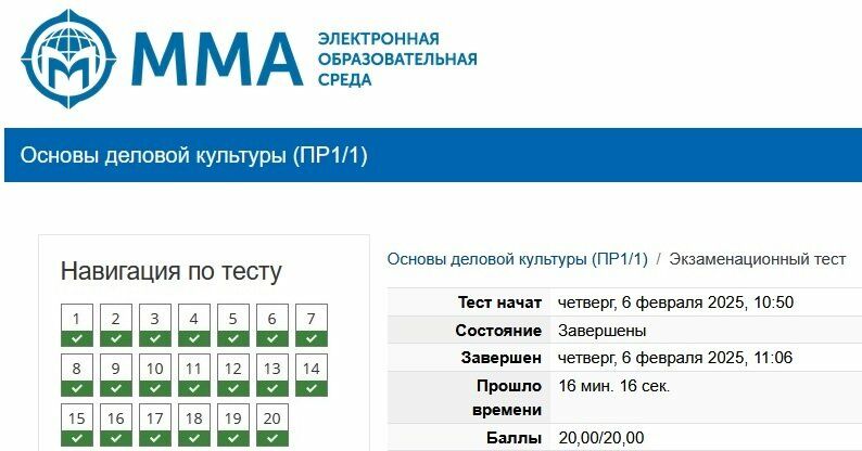 Сборник ответов к экзаменационному тесту Основы деловой культуры ММА.