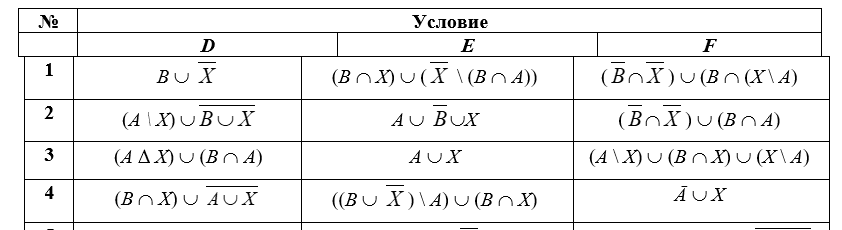 2. Выяснить взаимное расположение множеств D, E, F, если А, В, Х – произвольные подмножества универсального множества U.