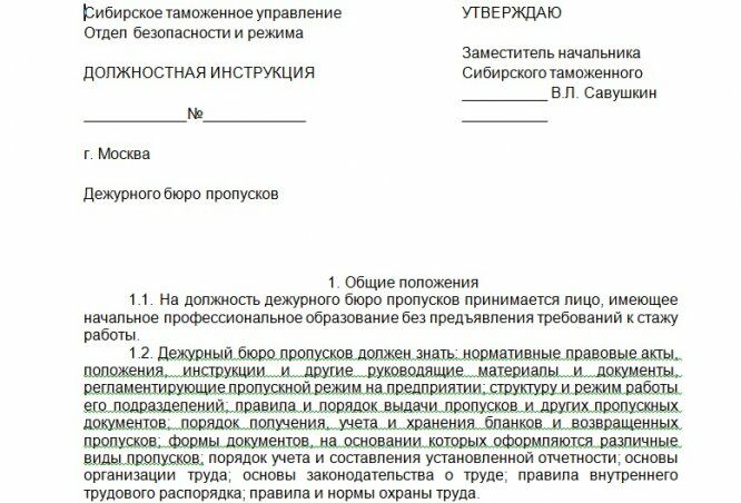 Правильное оформление должностной инструкции по дисциплине ОДО. Такое оформление преподаватель не отправила на пересдачу, а поставила хорошую оценку. Все переносы, отступы - все сделано по правилам ОДО. На картинке представлен фрагмент оформленной должностной инструкции.