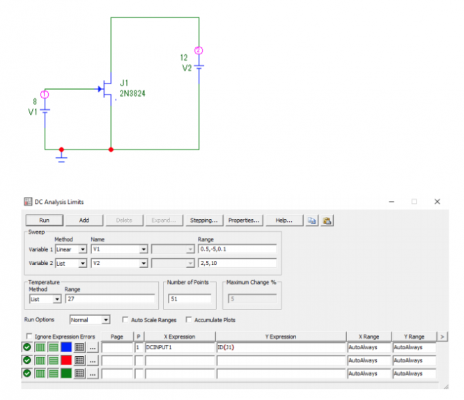 Характеристики полевого транзистора Для исследования передаточной и выходных характеристик транзистора NJFET использовалась следующая схема: