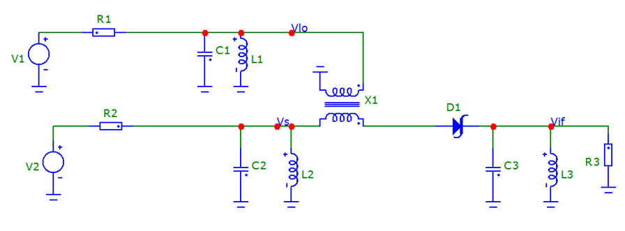 В данной лабораторной работе рассматривается принцип действия и анализ параметров однотактного понижающего диодного смесителя, выполненного на основе диода Шоттки BAT15-099R. Целью работы является моделирование схемы в программе MicroCap 12, исследование процессов преобразования частот и оценка характеристик смесителя, включая коэффициент передачи, уровень просачивания сигнала гетеродина, а также спектральный состав выходного сигнала.