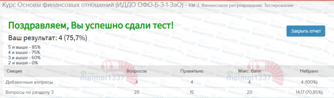 Курс Основы финансовых отношений - КМ-3. Финансовое регулирование. Тестирование - 74,7%