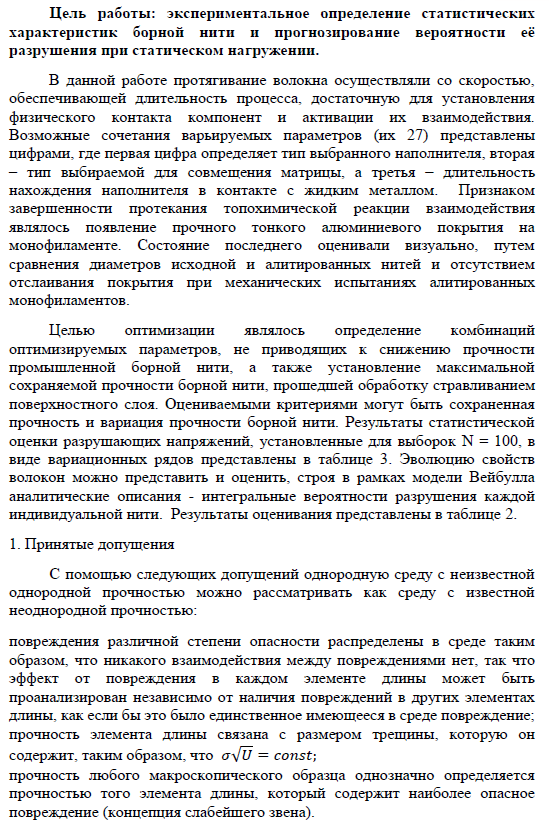 Для студентов МГТУ им. Н.Э.Баумана по предмету Основы физико-химии и технологии композитовДомашнее задание №2 "Методика входного контроля монофиламентов, статистическое описание и моделирование прочности волокна" (нить 1-1-1, 1-1-3)Домашнее задание №2 "Методика входного контроля монофиламентов, статистическое описание и моделирование прочности волокна" (нить 1-1-1, 1-1-3)