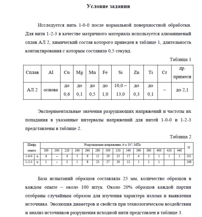 Главная » Учебные материалы » Основы физико-химии и технологии композитов » Домашние задания » МГТУ им. Н.Э.Баумана » 4 семестр » Домашнее задание "Методика входного контроля монофиламентов, статистическое описание и моделирование прочности волокна" (варианты 1-0-0 и 1-2-3)