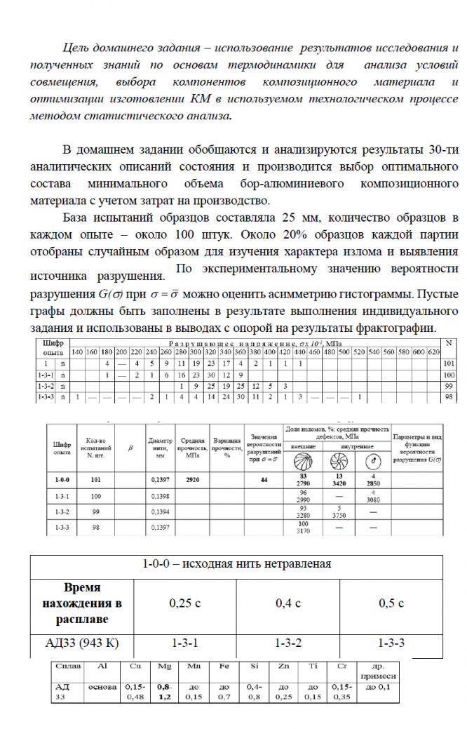Для студентов МГТУ им. Н.Э.Баумана по предмету Основы физико-химии и технологии композитовДомашнее задание - Методика входного контроля монофиламентов, статистическое описание и моделирование прочности армирующего наполнителя при изготовленДомашнее задание - Методика входного контроля монофиламентов, статистическое описание и моделирование прочности армирующего наполнителя при изготовлен