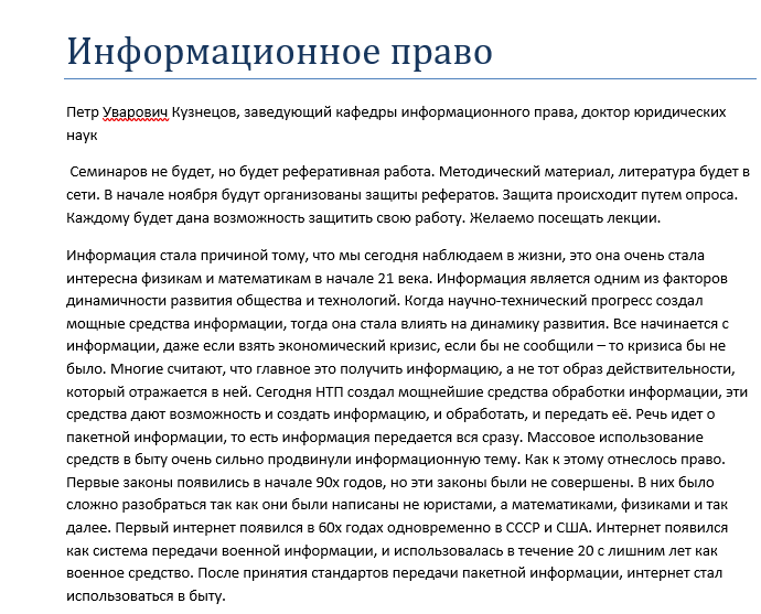 Для студентов УрГЮУ по предмету Основы информационного праваЛекцияЛекция