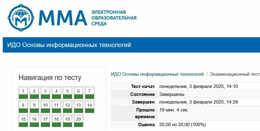 Сборник ответов к экзаменационному тесту Основы информационных технологий ММА.