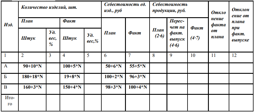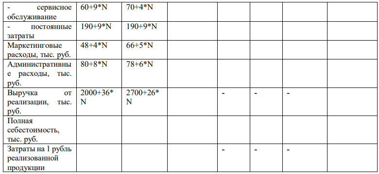 Фактический выпуск изделия А в отчетном периоде составляет (16 200+30*N) тыс. шт. Резерв увеличения выпуска изделия А – (1 900+10*N) тыс. шт. Фактическая сумма затрат на производство всего выпуска составляет (96 000+500*N) млн. руб. Резерв сокращения затрат по всем статьям – (6 900+210*N) млн. руб. Дополнительные переменные затраты на освоение резерва увеличения производства продукции – (3 000+150*N) руб. на каждую единицу дополнительного выпуска. Определить резерв снижения себестоимости продукции.