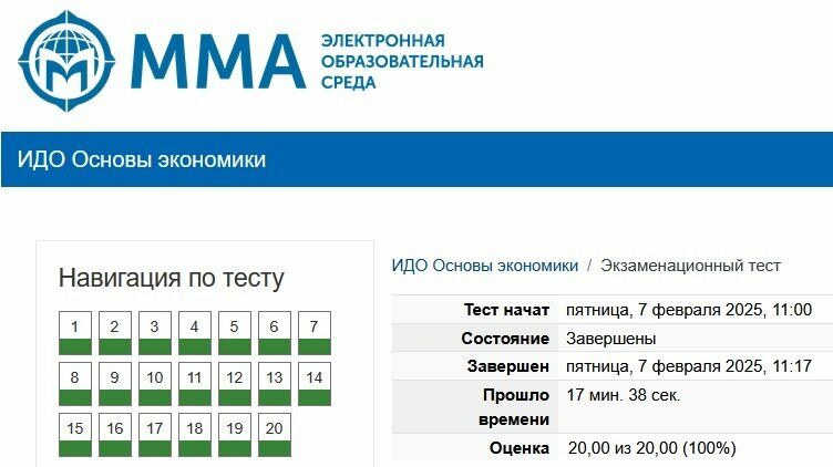 Сборник ответов к экзаменационному тесту Основы экономики ММА.