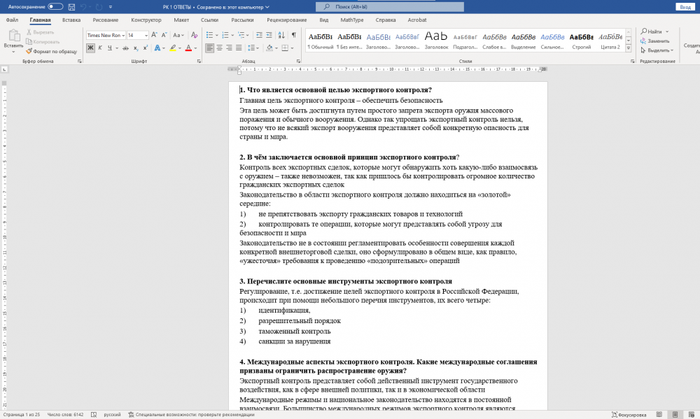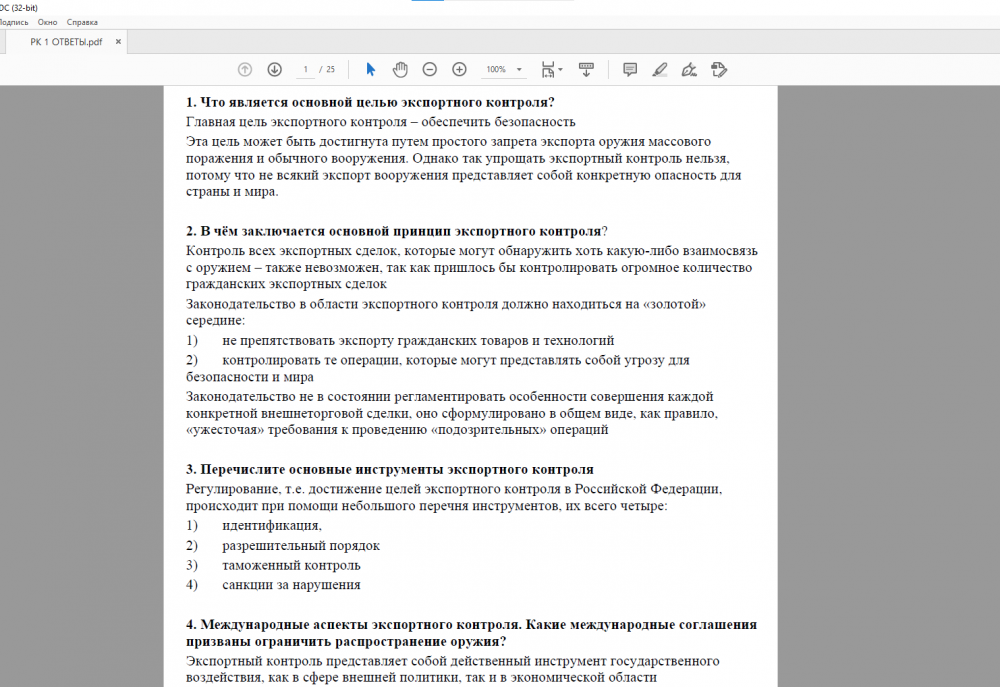 Ответы к тесту/контрольной: Ответы на РК "Основы экспортного контроля"