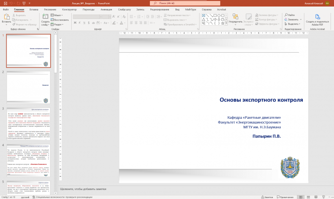 Для студентов МГТУ им. Н.Э.Баумана по предмету Основы экспортного контроляП. В. ПапыринП. В. Папырин