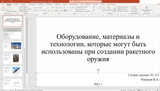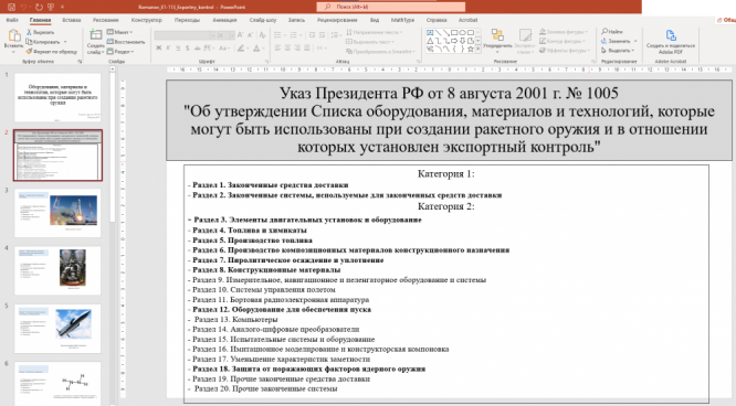 Доклад на тему "Оборудование, материалы и технологии, которые могут быть использованы при создании ракетного оружия"
